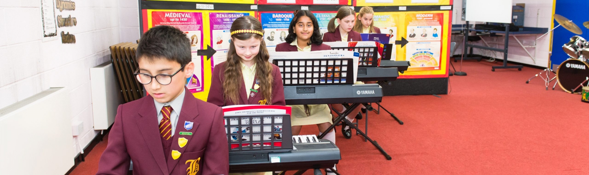 We have an extensive music department which boasts a full time music teacher and two peripatetic music teachers, who provide individual tuition in a wide variety of musical instruments: