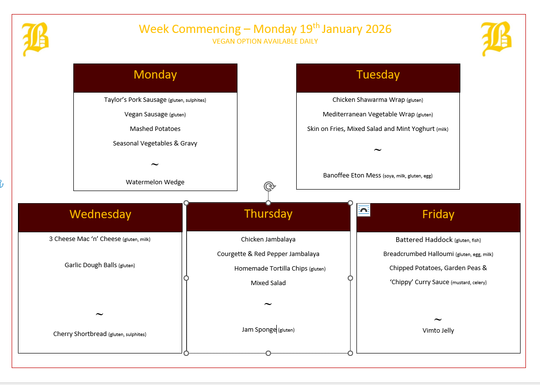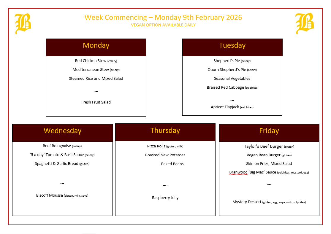We cater for all dietary requirements whether they be religious or for health reasons. We also have a delicious, daily vegetarian option.